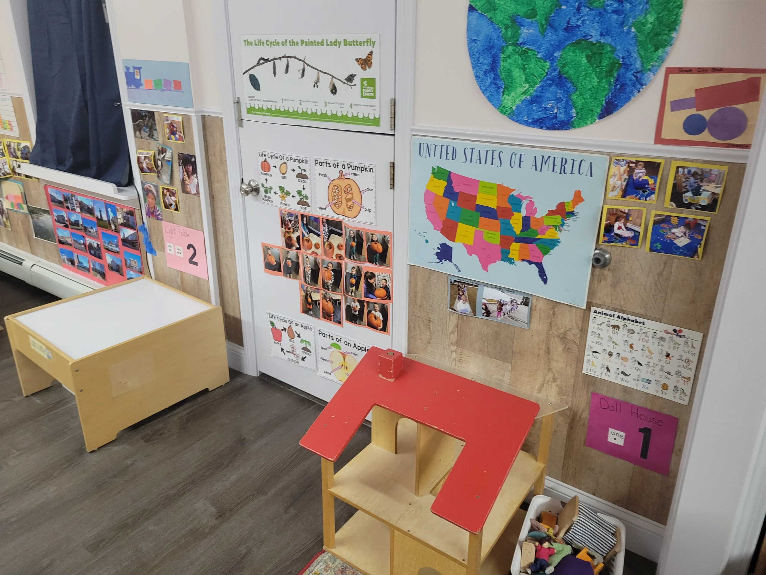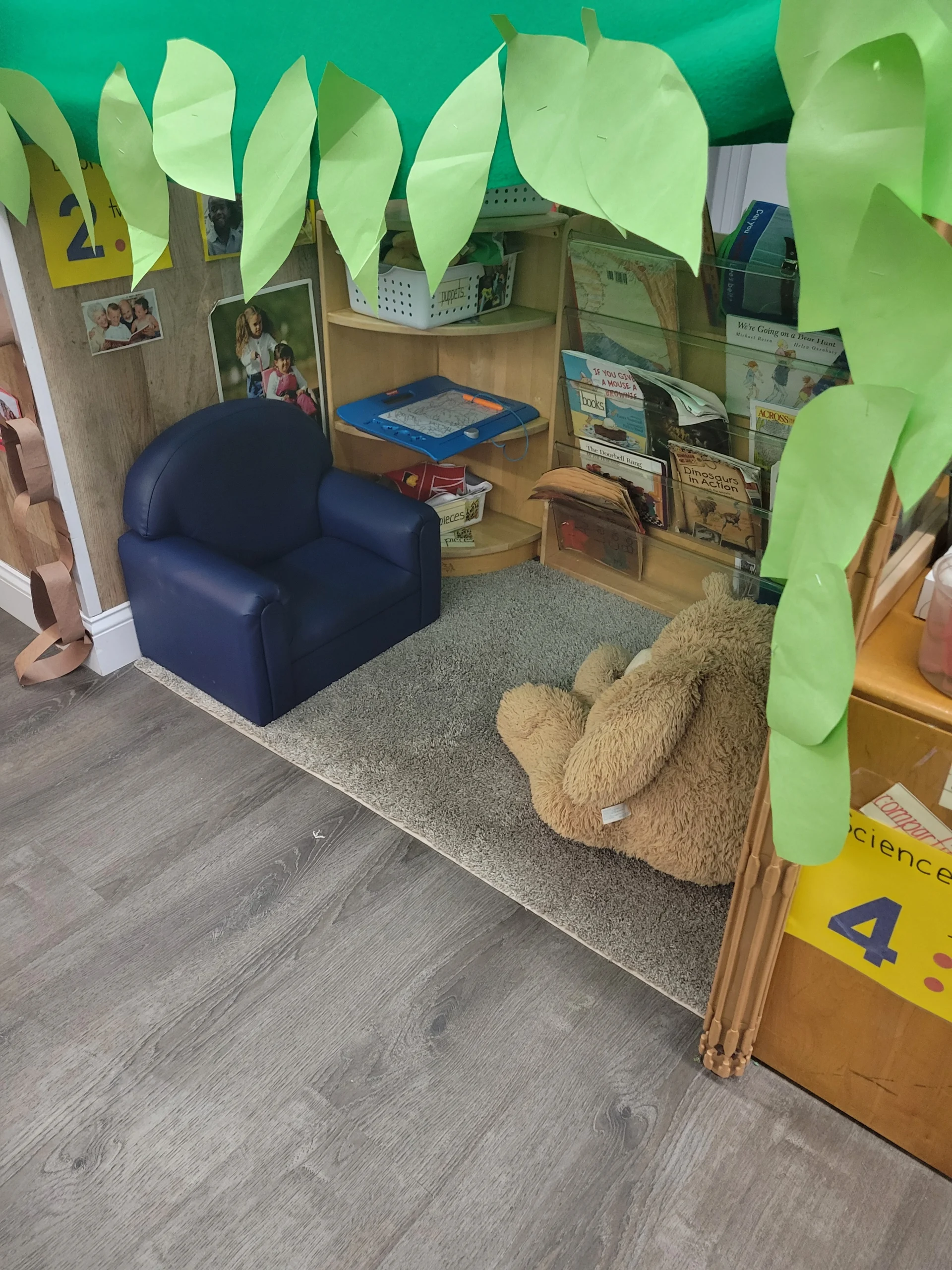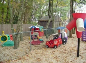The spacious playground, shaded naturally by our allotment of trees, offers children the opportunity for exciting games, including the all-time favorite, Hide and Seek. Special “niches” at the base of tree trunks give little legs a chance to relax and little minds a chance to engage in a story book.
