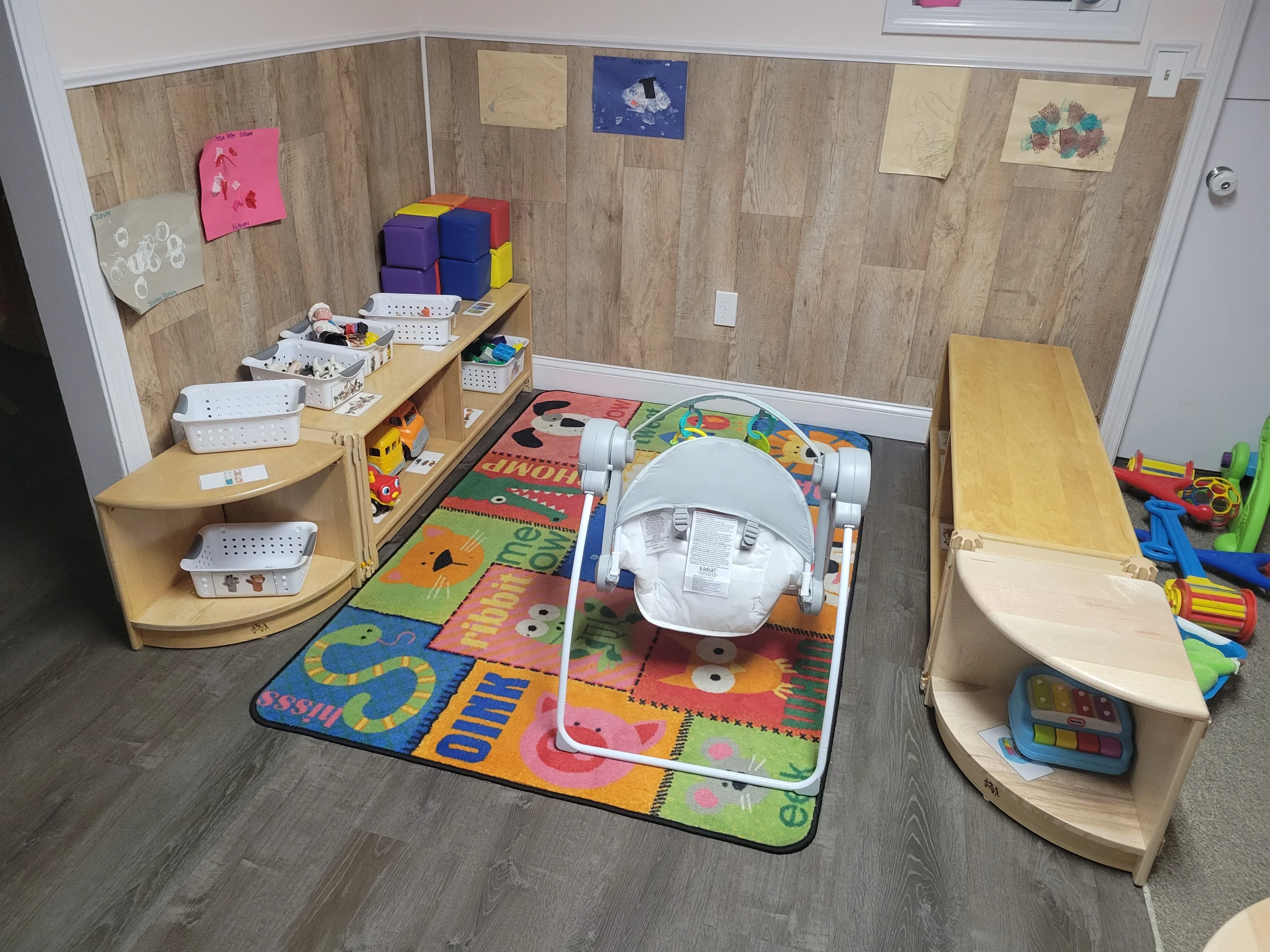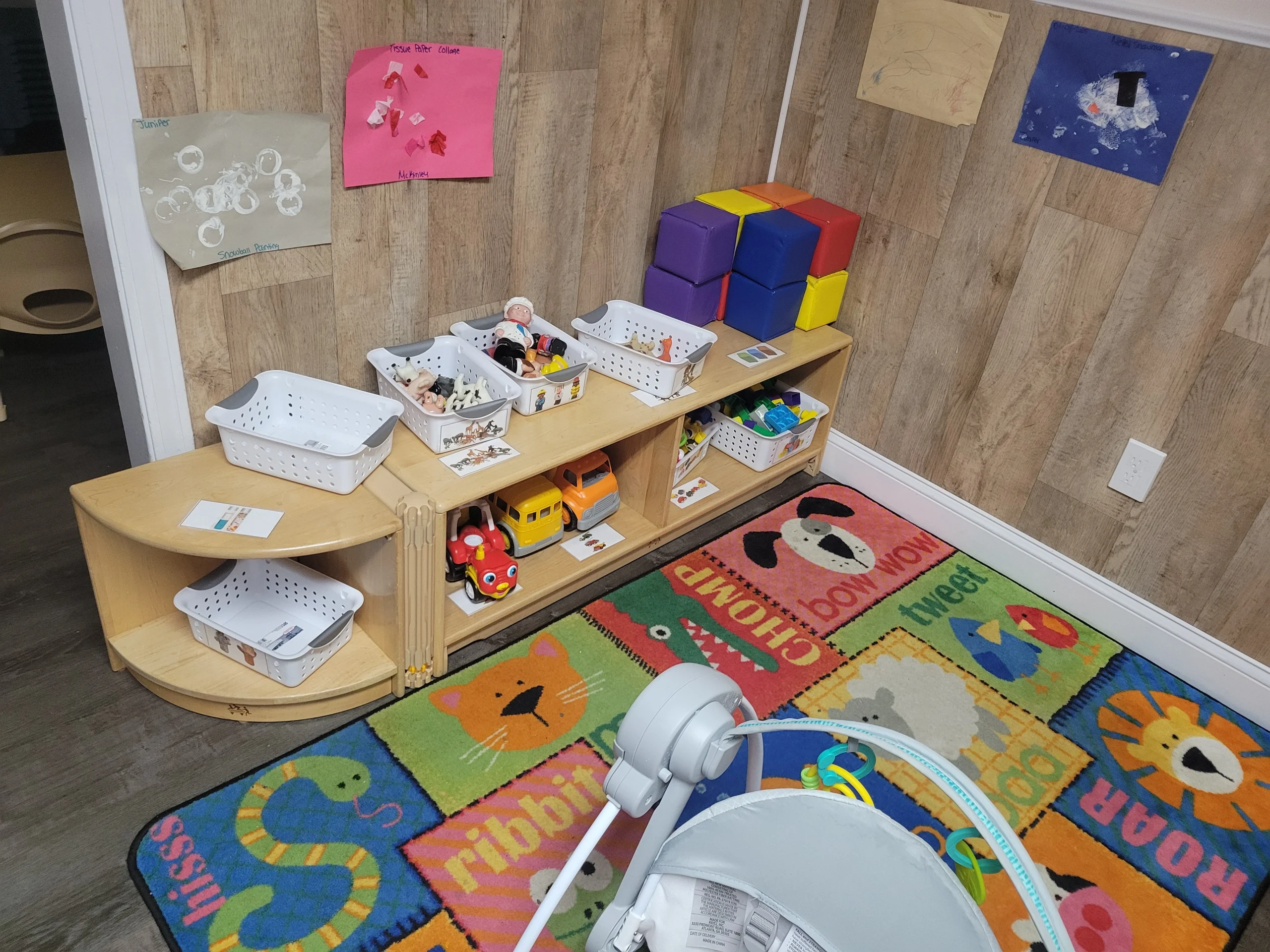 Our youngest crew enjoys a designated play space of their own. Young explorers make fascinating discoveries as they test their skills on toddler sized equipment. Bubble catching and push/pull toys encourage parallel play. Infants enjoy the refreshing outdoors during daily buggy walks in addition to swinging, bouncing, or exercising in the play area.